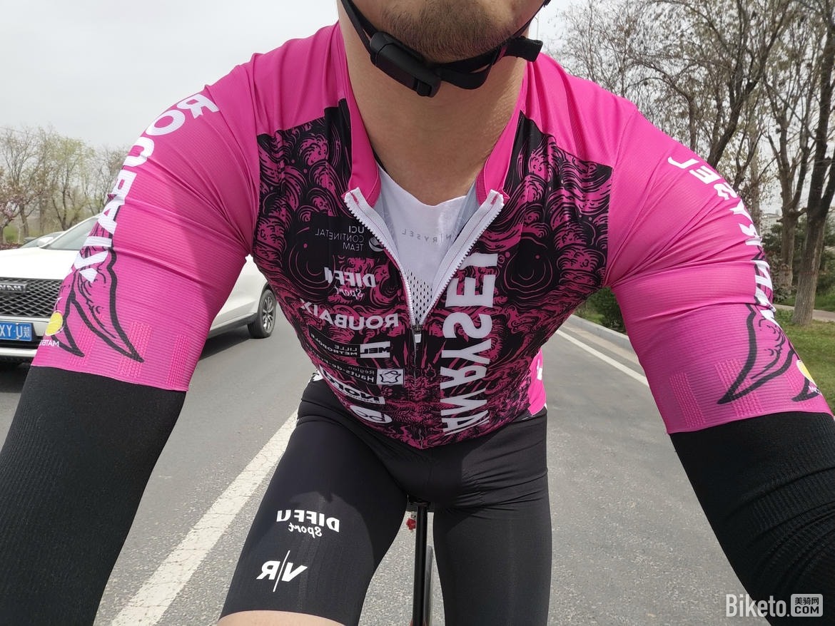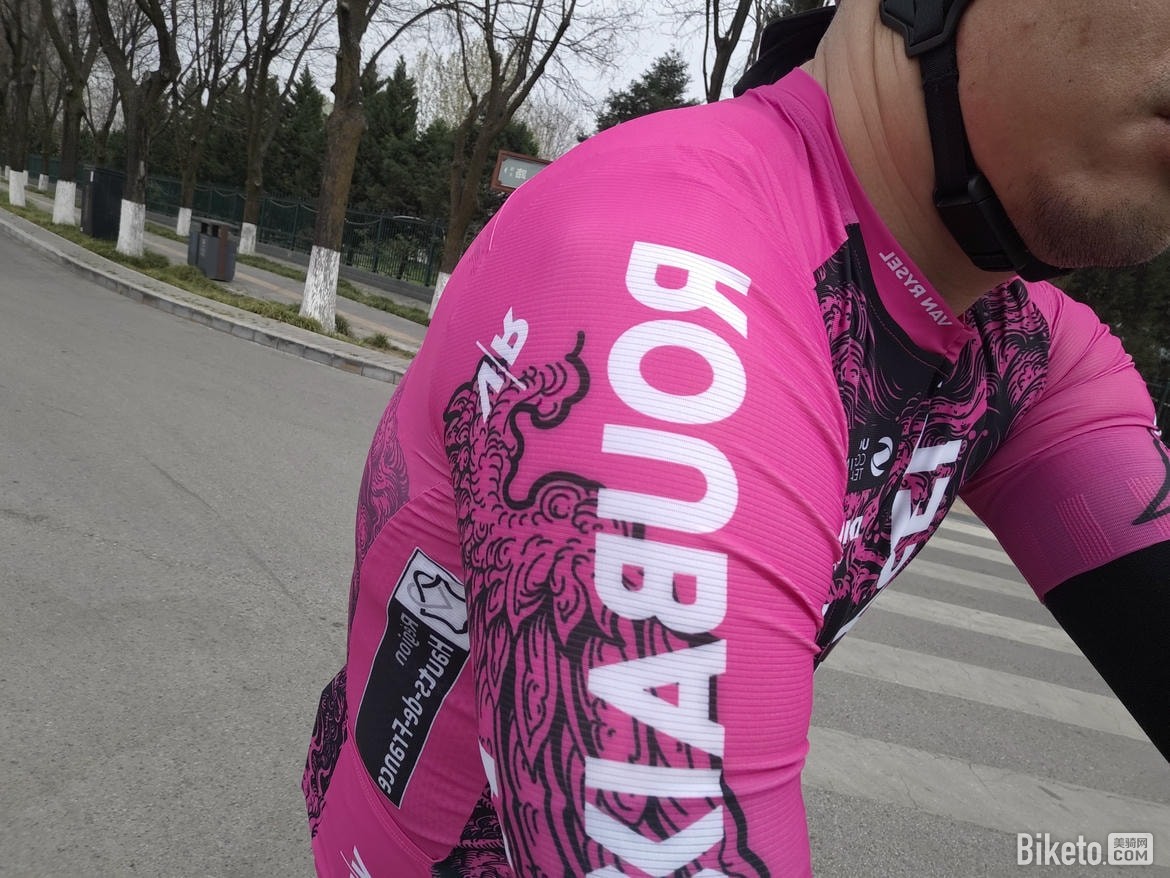 肩膀部位的裁剪在骑行姿势下会有不少皱褶,立体剪裁这一块还有不小的优化空间。