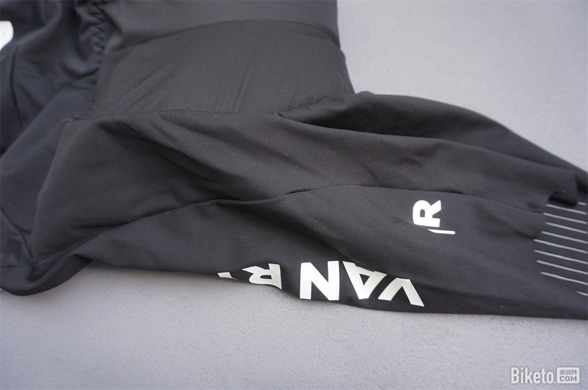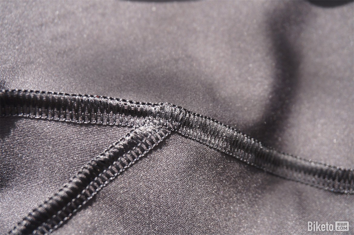 剪裁方面RCR5没有使用传统的前后片拼接的方式,整个腿的部分使用了一整块面料,左右腿通过裆部拼接在一起。这样骑行裤的正面没有任何的拼接缝隙。