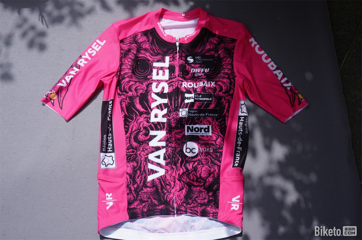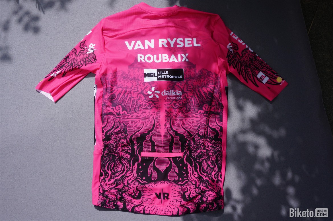 今年年初,迪卡侬赞助的洲际队Van Rysel Roubaix车队发布了今年新赛季装备,粉红色主色调的基础之上,设计了新的主题“地狱与天使”,是我个人觉得迪卡侬近几年设计的最好看的一套骑行服,没有之一。