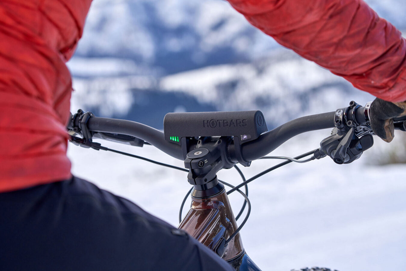 HotBars 车把内置了一套可拆卸的移动电源兼控制单元,通过车把内部的布线连接到两端的加热元件。热量经由普通山地车握把传递到手上,从而让你无需佩戴笨重的冬季手套或把套。这意味着无论你是驰骋林道、玩胖胎雪地骑行,还是全年通勤,都能获得更灵活的手指和更精准的操控。