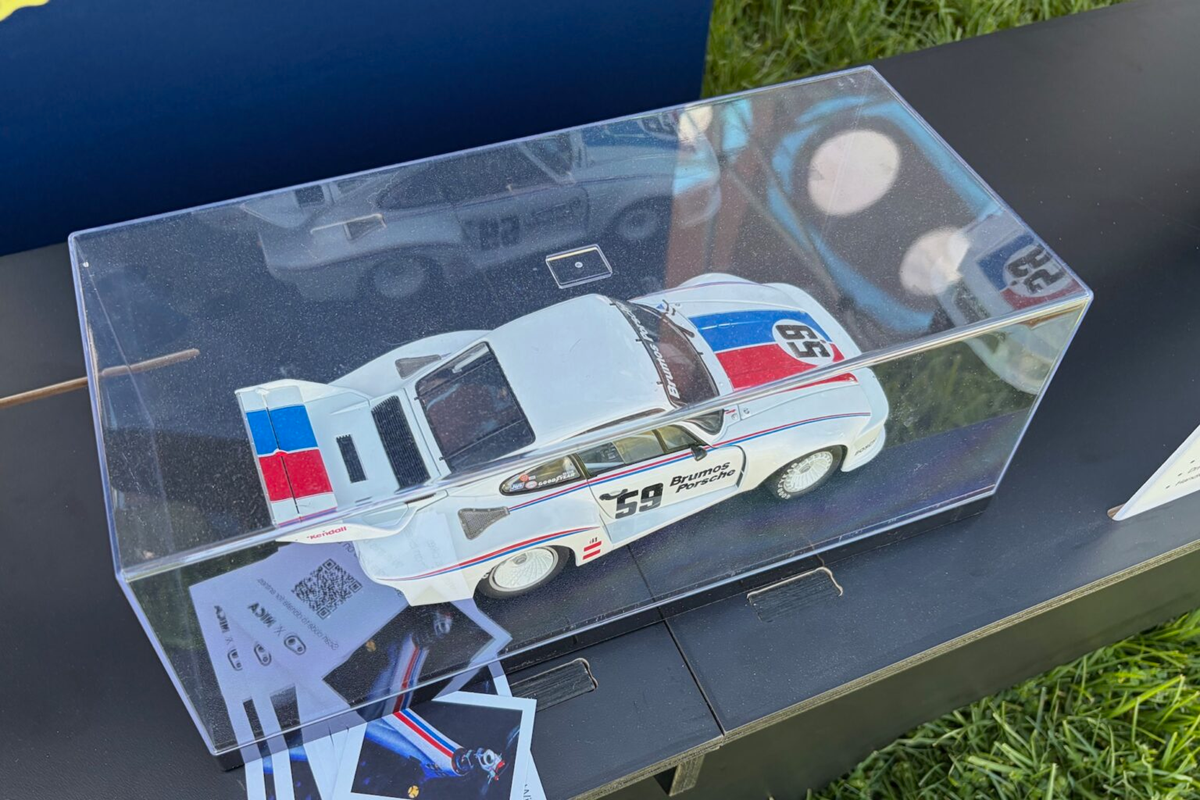 ▲一辆定制涂装的 Propain 自行车,旁边是透明盒子里的迷你保时捷