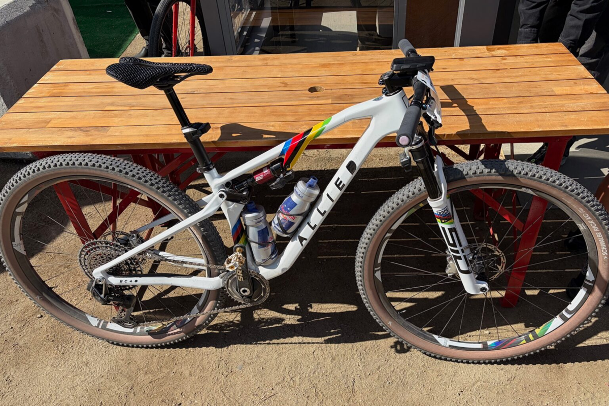 ▲凯特·考特尼的定制涂装 Allied BC40,车架、前叉甚至轮组都涂装成与彩虹衫相配的颜色