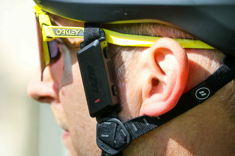 品牌 Lazer 与生产多种通信设备的 Cardo 合作推出了 VeloVox。它由两个发射/接收单元组成,可固定在头盔束带上,让你能够与其他骑手通话(最多32人)、接收来自部分APP得导航指令、听音乐或播客,或者接听电话。这些单元很容易安装,但这并非普遍体验:它们要求在耳朵下方的束带分叉处之前有一定的束带长度,而另一位骑手的头盔设置恰好没有这个余量。