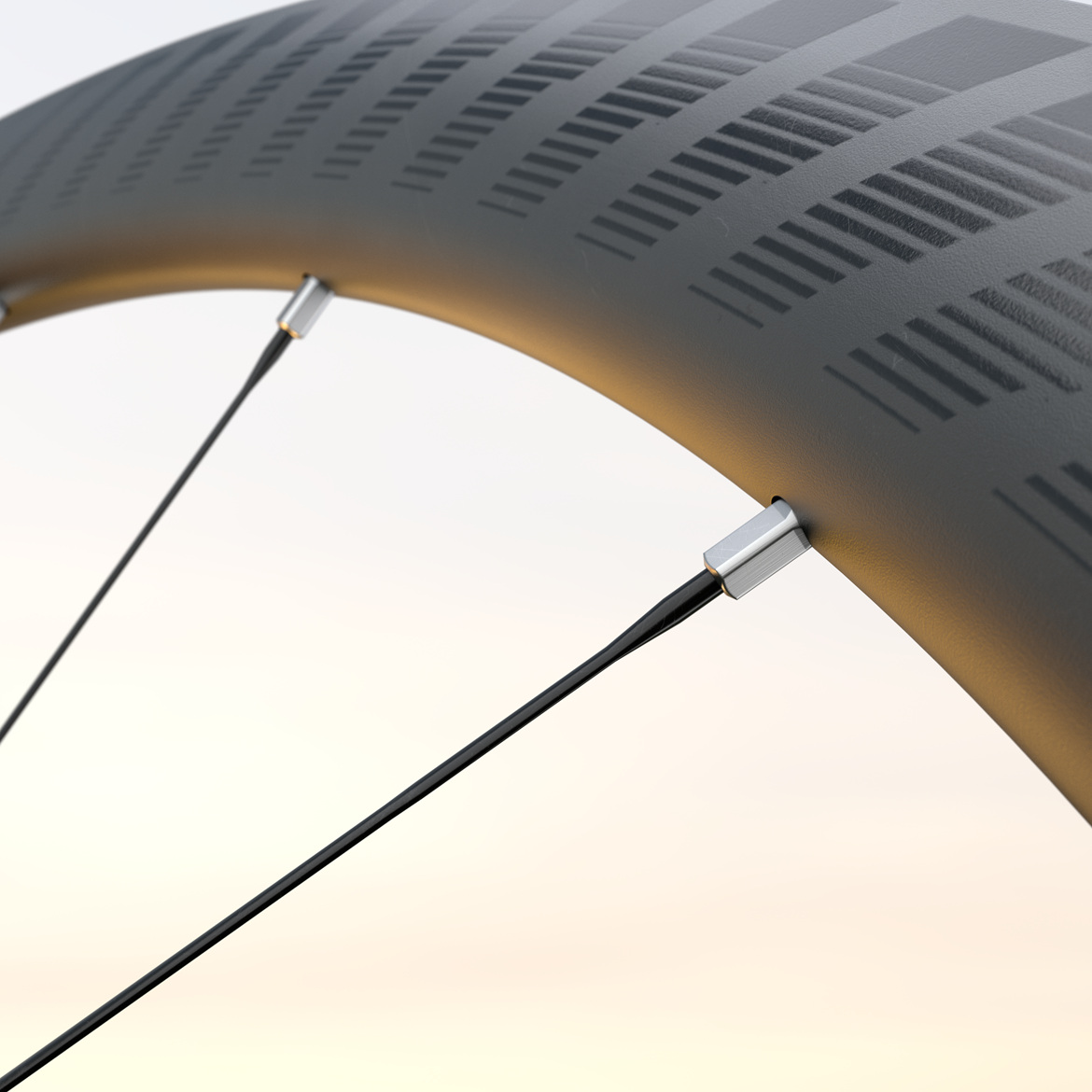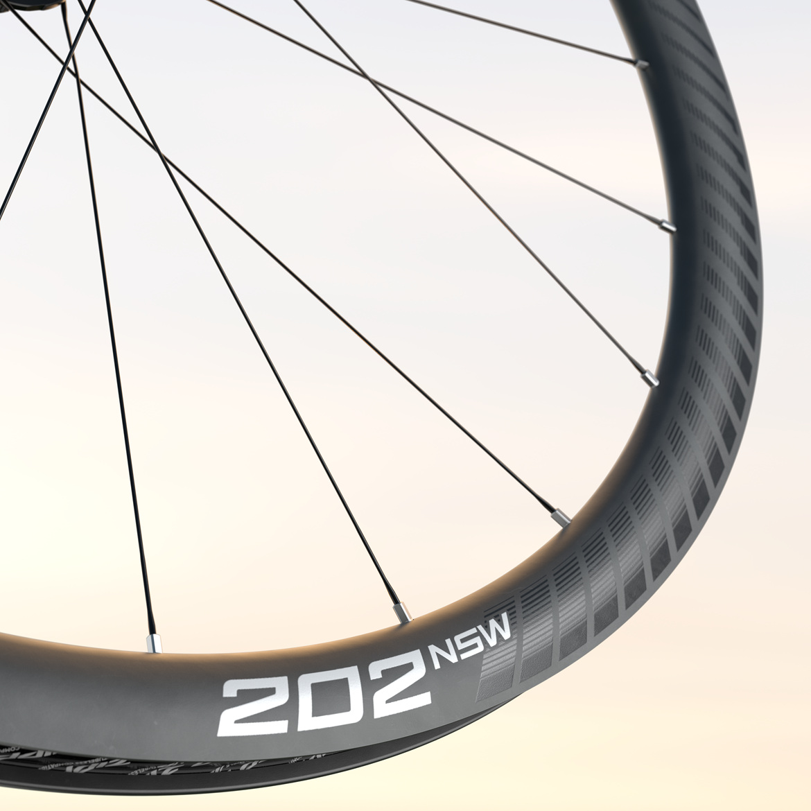 基于旗舰 Zipp 353 NSW 所采用的先进碳纤维结构,202 NSW 引入了仿生层叠技术(Biomimetic Laminate)。该技术通过混合不同模量的碳纤维材料,在辐条孔区域实现更高刚性,在胎床区域提升韧性,其工作方式类似肌腱的功能。轮圈选用更注重强度与耐久性的碳纤维,以应对路面冲击,而内侧部分则采用更高模量的碳纤维,以在动态骑行负载下维持稳定的辐条张力。