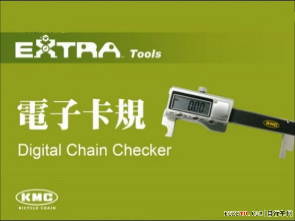 链条作为自行车传动系统的一部分,长期骑乘必然有所损耗,过度磨损的链条会造成变速系统齿盘飞轮磨耗并引起骑乘安全性问题,对于一些车友来说,链条磨损的严重程度难以测量,未能及时更换链条,KMC为此而设计了电子卡规,方便车友检测自己的链条是否过度磨损。