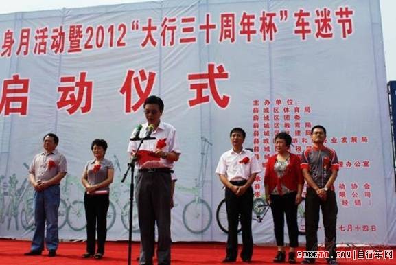 7月14日,由枣庄华铭车业有限公司主办、枣庄市薛城区特邀省内9支单车俱乐部,举办了2012年全民健身月暨庆祝“大行三十年”车迷节活动,共有500多名自行车爱好者参加。枣庄骑行活动是本次大型活动的第一站,接下来会在徐州、济宁、青岛、泰安、滨州、德州、济南、临沂、聊城、东营、淮北等11个城市陆续举行。