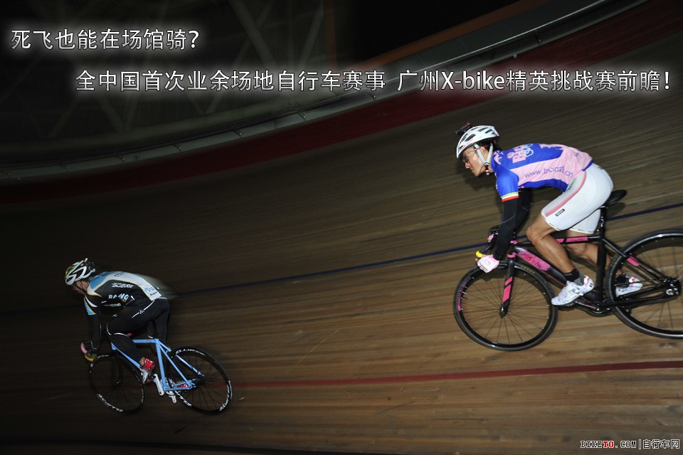 FIXED GEAR竞速文化在国内已经有了一定的规模,爱好者已经不再满足于街道上穿梭。终于,大家都把目光投向了FIXED GEAR的发源地——场地自行车馆!然而,中国各大举办过大型运动会的城市都会有一个绝佳的场地自行车场馆,可惜从来没有业余人士可以光明正大地踏上这些木板跑道上。这一次,广州人按捺不住了,借着广州大学城举办过2010亚运会的机会,通过多方的积极合作,广州X-BIKE精英挑战赛定于2012年12月1日于广州大学城的广州自行车馆召开。