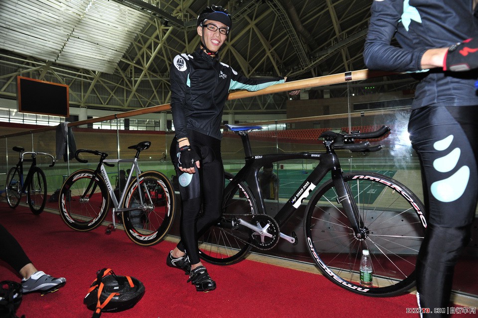 情侣档车手一齐出现在场馆内进行训练,他们都是广州本地知名的自行车爱好者