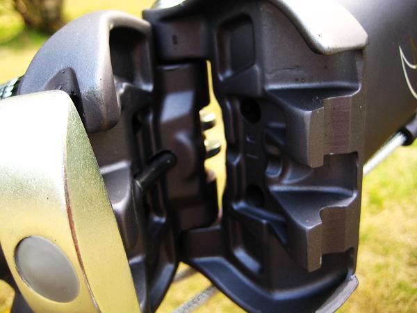 折叠车的折叠关节是衡量一辆折叠车性能的核心指标,这也是车友在选购折叠车最先考虑的环节之一。细看一下欧亚马RX1的折叠关节,此折叠部位的横档都加装了保险扣,无论是头管折叠部位,还是大梁折叠部位,均采用了SP8所没有的错位结构(也称榫结构),结合得自然更加紧密,车架的刚性自然更高,这一点,在之后的试骑过程中,得到了较好的验证。