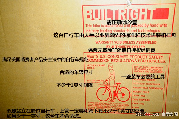 今天在收拾过程中,一个在角落里闪电整车打包箱子吸引住了小编的眼球,不仅是那迷人的闪电大LOGO,而且还有右下角那个小小的小人。闪电果然是大牌,连箱子都非常贴心,上面有着闪电认为最简单的挑选车架方法:只需跨过整车,挺直站立,胯下与上管不少于一英寸(1英寸=2.54厘米),如果少于一英寸,那么这个车架对您来说就太大了,不合适。同时,你可以准备寄回去了(再次羡慕外国的购物方式)。另外大家想知道里面装的是什么型号的车子么?提示一下,是碳纤维的软尾,而且是29er哦!敬请期待BIKETO测评室的测评!