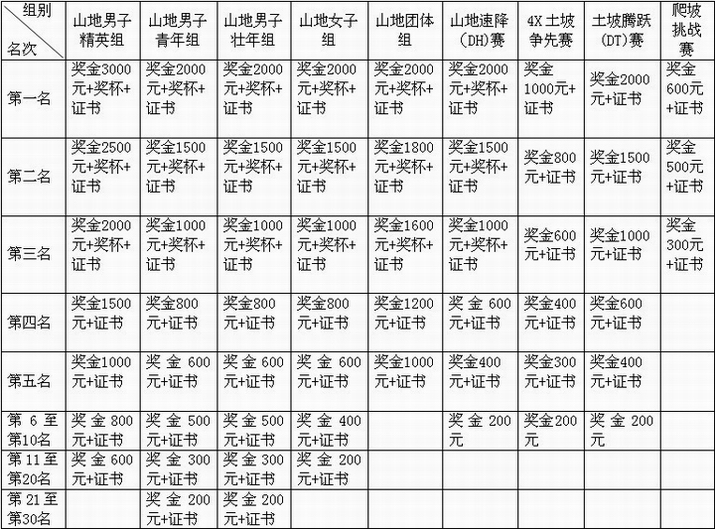 5、山地车公路赛体验组取前十名,获奖选手奖励由协办单位提供奖品。
