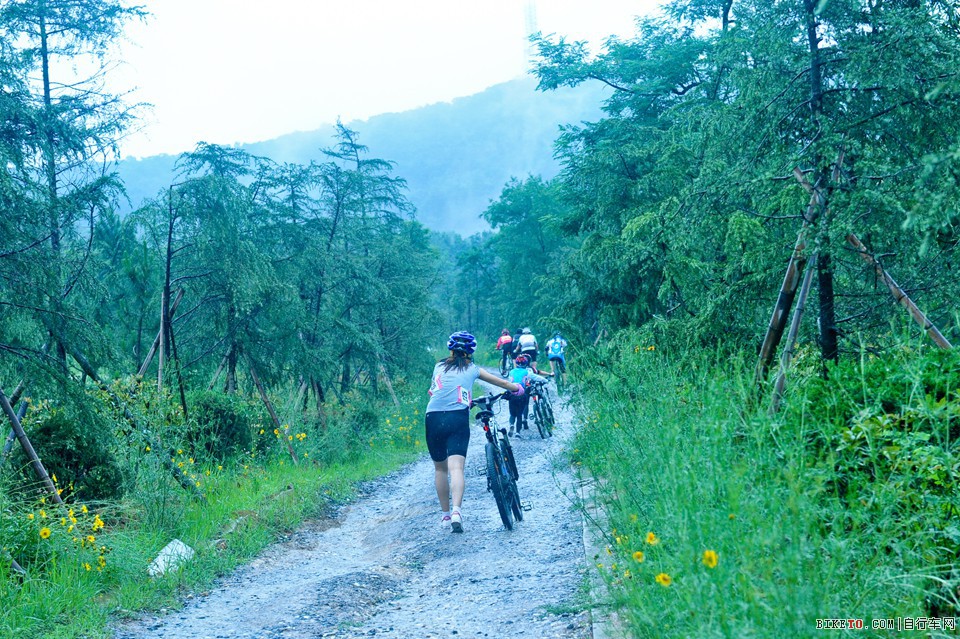 集团后面的女车友则要推车通过上坡和下坡路段。业余赛事针对没有比赛经验的女子或初级选手增设难度较低的组别是很有必要的