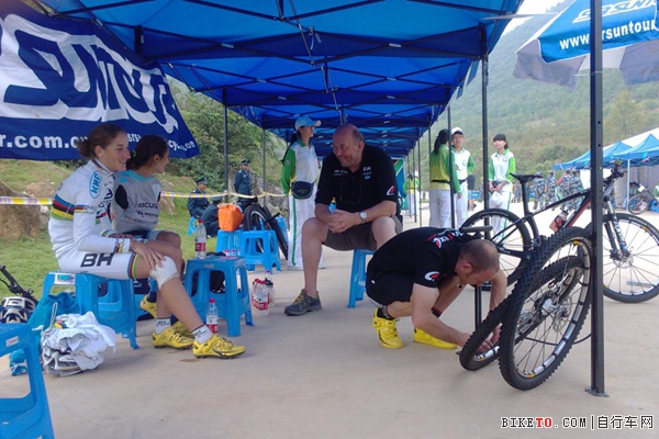 运动员休息区 BH-SR SUNTOUR 车队后援为了能给自己队友更好的服务,特准备一个醒目的标志让车队感觉家的温暖