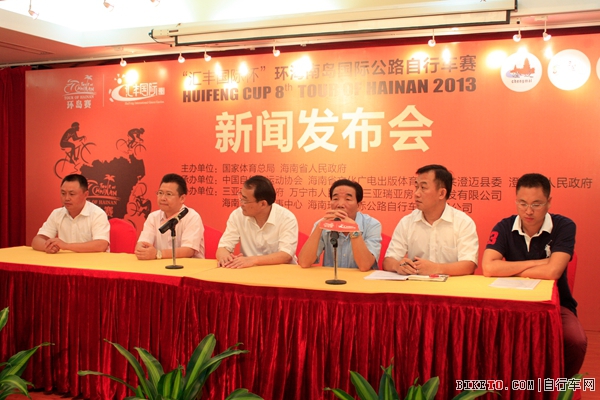 2013年环海南岛国际公路自行车赛将于10月20日-28日在开赛。今日(9月27日),第八届环岛赛召开新闻发布会,本届比赛由国家体育总局及海南省人民政府合力主办。本届赛事总冠名落户汇丰国际,赛事定名为“汇丰国际杯”2013第八届环海南岛国际公路自行车赛。海马汽车作为赛事官方指定用车,将为大赛提供全程车辆服务保障。