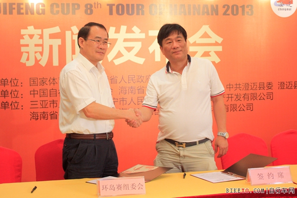 发布会上赛事主办方确定了与汇丰国际及海马汽车及各市代表的合作协议。海南省文体厅领导在致辞中表示:“汇丰国际、海马汽车与本届环岛赛的合作,对于各自企业品牌传播和环岛赛市场化运营将起到积极地促进作用,这种合作方式将成为企业进行体育营销的经典案例和企业与赛事共赢的成功典范。”