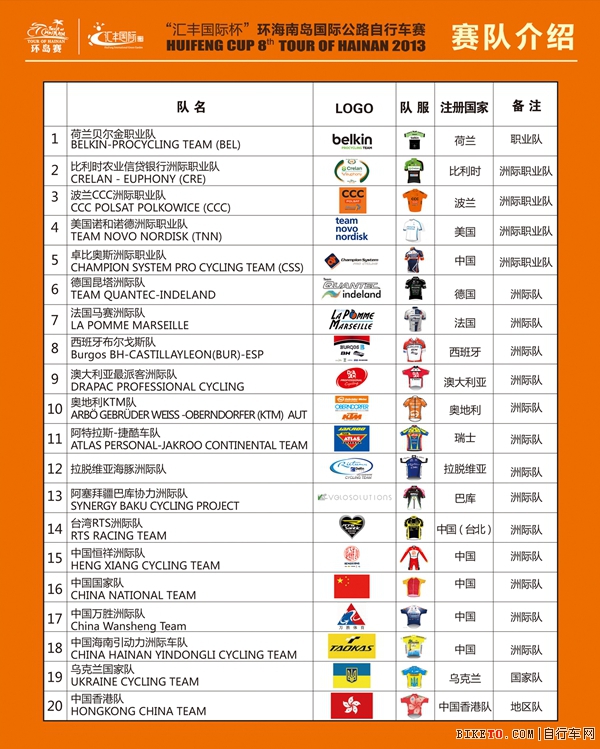 附:第八届环海南岛国际公路自行车赛自行车队介绍