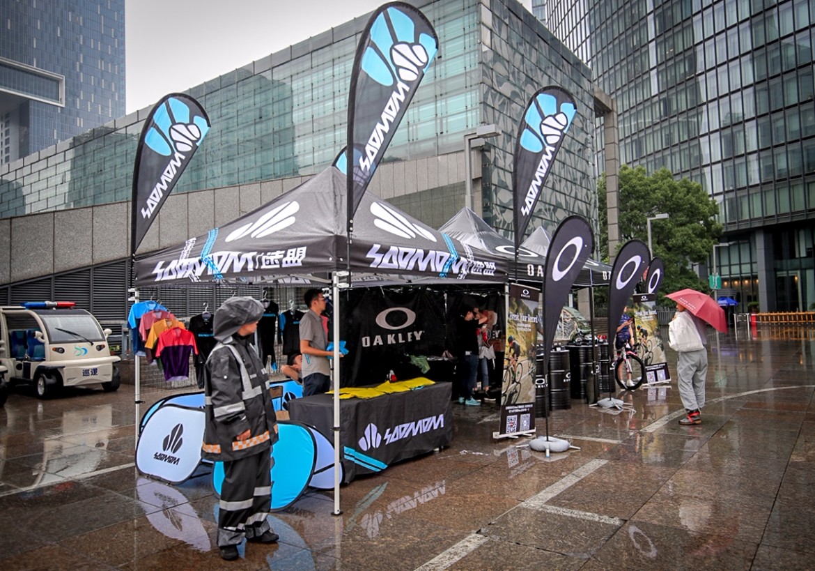 ▲欧克利眼镜、速盟骑行服、100%眼镜、ABUS头盔为选手们展示了今年的新款产品。