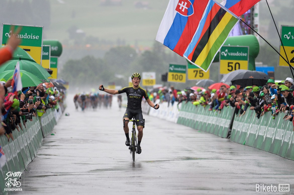 2018年6月12日,环瑞士第四赛段结束。尤尔-延森(Mitchelton-SCOTT)一突到底,在大集团面前抢走赛段冠军。