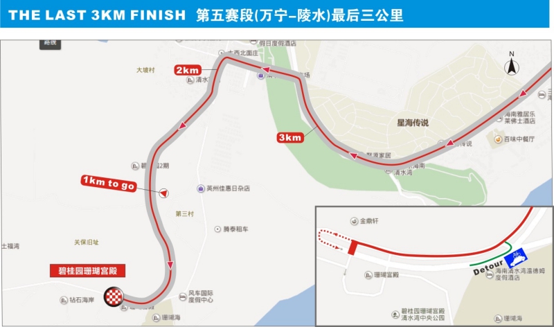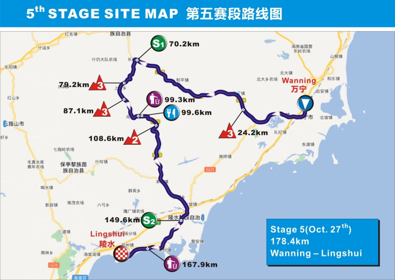 10月27日,“碧桂园杯”2018第十三届环岛赛“碧桂园·珊瑚宫殿”赛段(万宁-陵水)将从万宁出发,途经琼中前往陵水。这是本届环岛赛的第一个山地赛段,全长178.4公里,大集团将面对4个爬坡点,包括3个三级爬坡和1个一级爬坡。