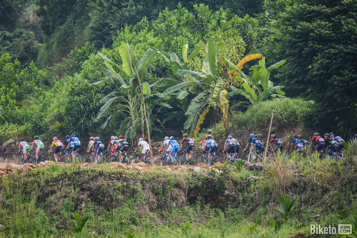 由于爬坡点集中在赛段的中段,因此大集团并没有轻易放走兔子。在前50公里,大集团的均速竟然达到了45.8公里/小时。比赛进行了接近100公里才跑出了今天的四只兔子,他们分别是亚历克西斯·盖琳(马赛车队)、科勒门蒂·贾丽斯(以色列单车学院车队)、西蒙·佩莱德(瑞士国家队)和达维德·欧瑞科(奥地利福拉尔贝格-森地客车队)。4人集团包揽了本赛段最后一个爬坡点(二级爬坡前四),而处在大集团中的吕先景在接近爬坡点的位置再发动进攻,拿下本爬坡点最后1分。首次参加职业公路赛事的吕先景今天拿下14个爬坡积分,成功穿上了“一汽·大众蔚领C-TREK”爬坡王圆点衫。