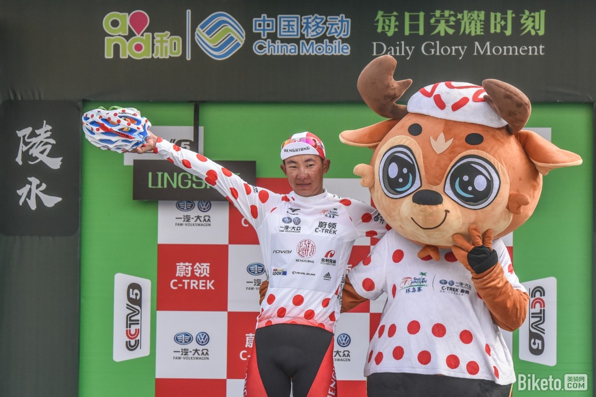 在前3个三级爬坡点中,去年全运会山地跃野项目冠军、中国恒翔车队的吕先景表现出色,在前三个爬坡点强势拿下两个第一和一个第二。这样在赛段过半后,他在爬坡积分榜上已经处于领先位置。