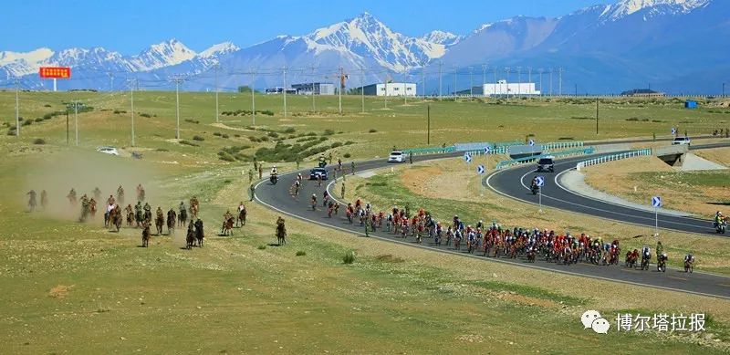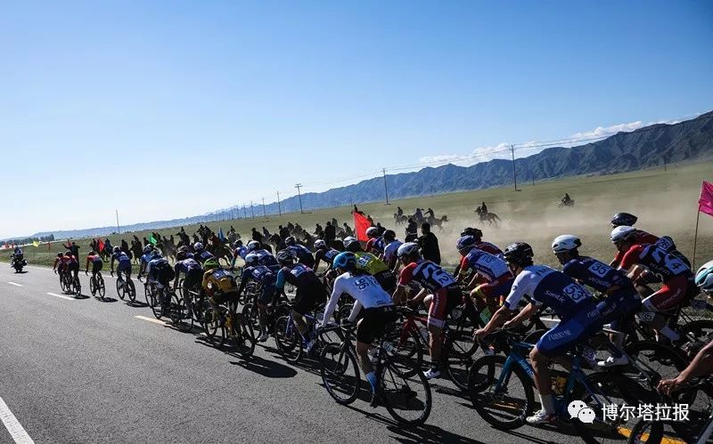 6月26日10时,2019中国新疆第十三届环赛里木湖公路自行车赛第四个比赛日,在被誉为“西域凉都”的温泉县鸣枪开赛,骑行80公里,到达“大西洋的最后一滴眼泪”的赛里木湖,海拔从1331米上升到2124米。