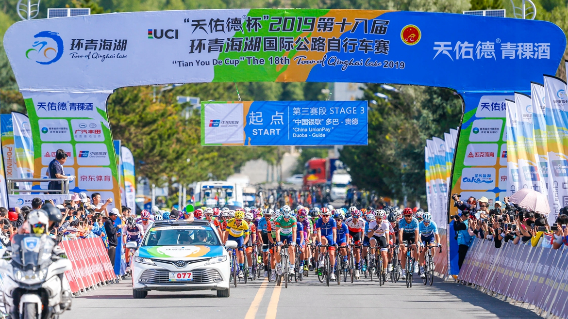 7月16日,“天佑德杯”2019第十八届环青海湖国际公路自行车赛进入第三赛段多巴至贵德的比赛。在今天的比赛中,22支车队的147名选手迎来了第一个难关和挑战,感受到了环湖赛的高海拔和高强度。