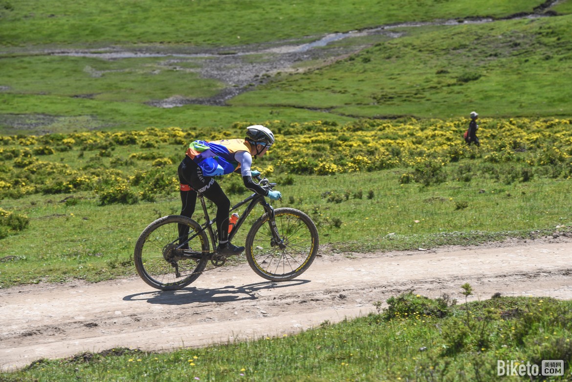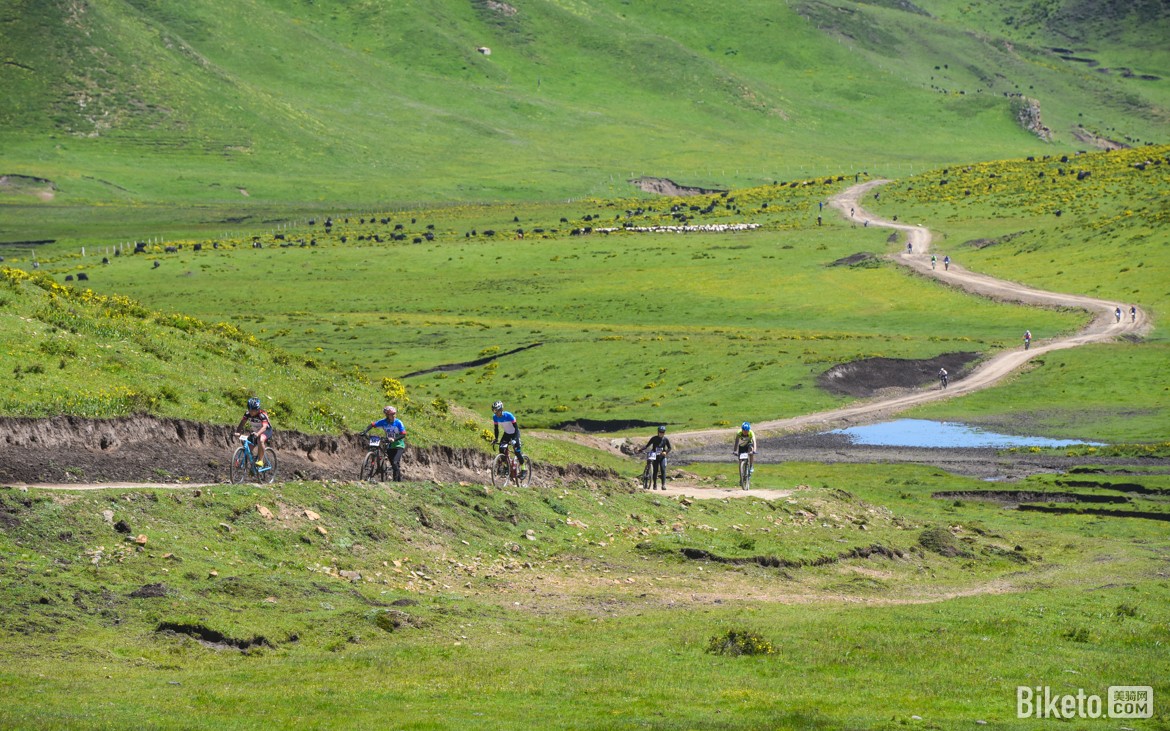 今天的比赛包括传奇男子团体、精英A、精英B、大师、男女团体、Gravel组,藏地男子大众、女子大众等多个组别,赛道全长43公里,需翻越海拔3283米的高原山地,且绝大多数路段在甘南草原,对车手来说还是有很大的挑战性,草原上牛羊成群,车手穿越而过,与羊共舞。尤其是途中需穿越涉水路段,此时的甘南平均气温13℃左右,淌水过河十分冰爽!