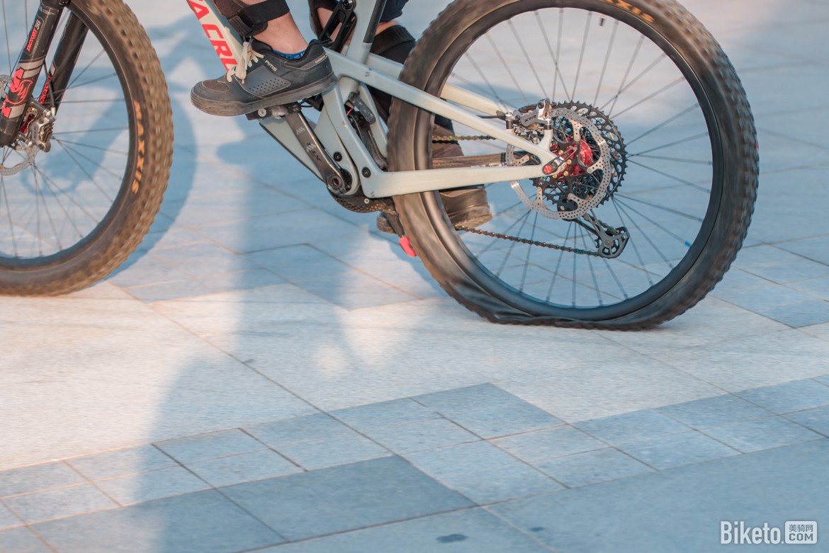排位赛鏖战正酣,忽然有选手临到跳台前跳车跑下接坡,原来是爆胎。速降赛很考验选手对胎压的掌握和通过障碍的技巧,爆胎非常影响选手成绩,幸好这一轮只是排位,不会产生淘汰。