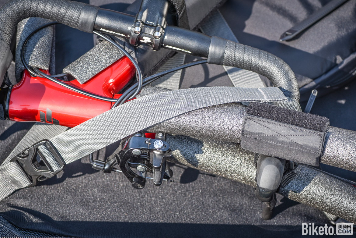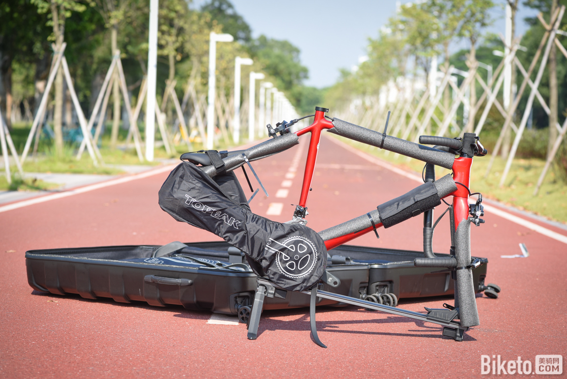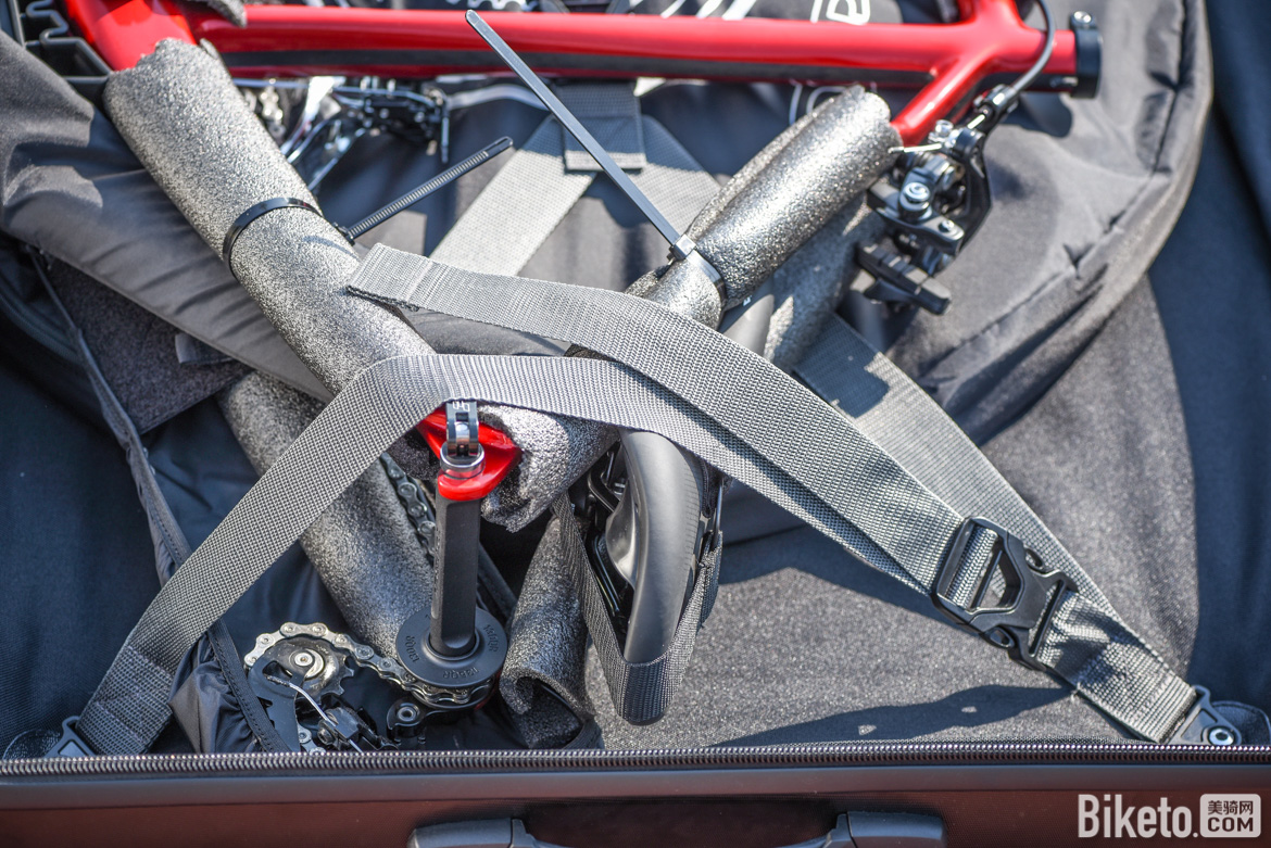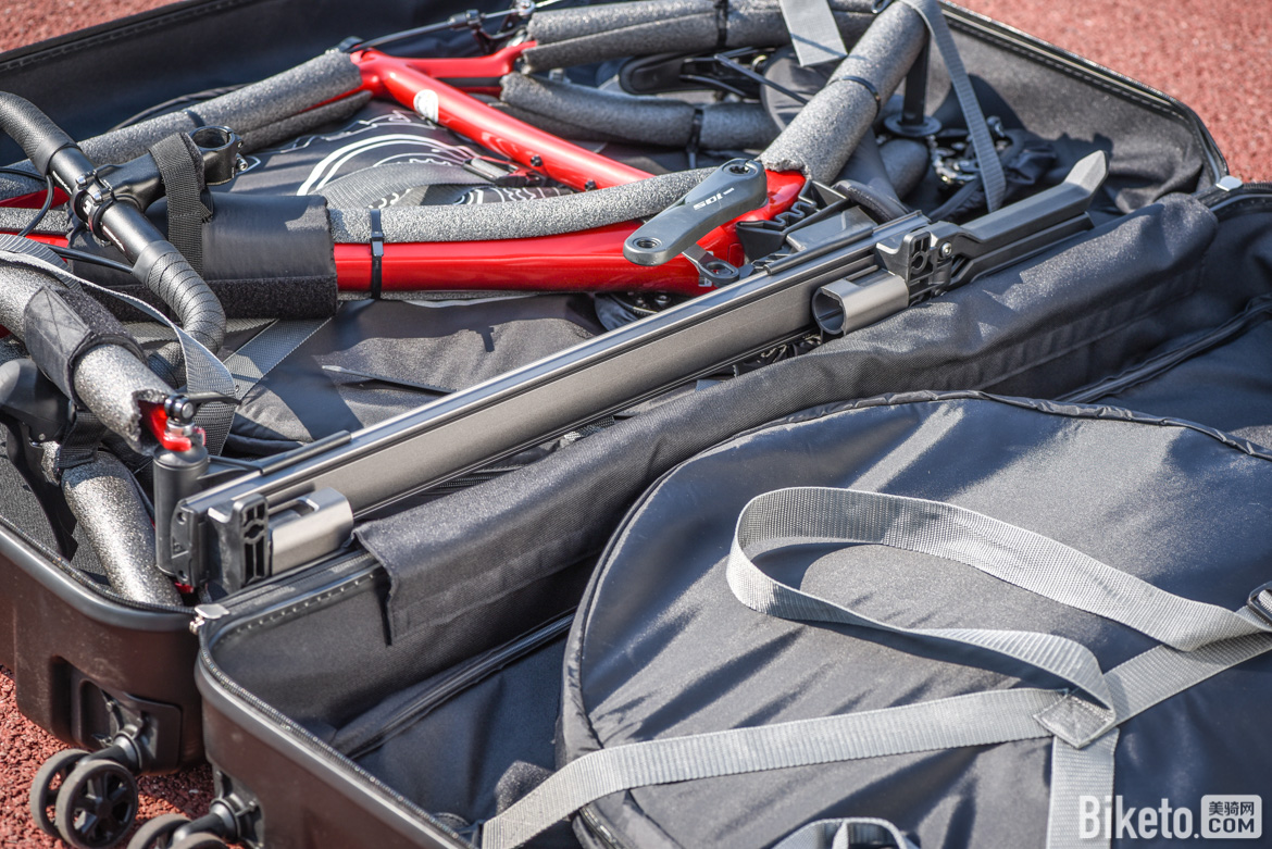 在使用这款装车箱除了轮组需要单独存放外,你还需要拆卸坐垫和弯把,对于小编来说,这是目前为止我所见到过包装套件最为极致的一个装车包。