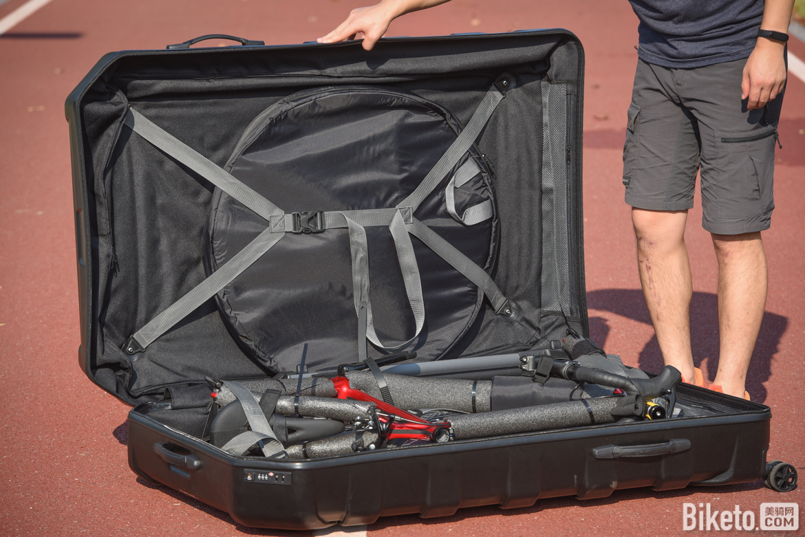 1、有车友觉得体积偏大;实际这款装车箱的体积在装入一对轮组和车架组后除了保护的泡棉层外厚度刚刚好,另外携带这款装车箱可以进行托运,除了需要花钱外并不会因为法律和体积的问题被航司阻挡在外。