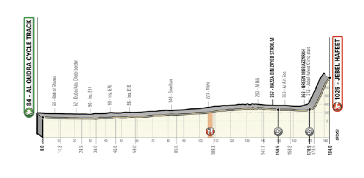 第三阶段将迪拜与阿布扎比连接起来,是本届最长的一个赛段,共184公里。从Al Qudra自行车道出发后,这条路线长途穿越沙漠,直到到达Al Ain,并经过该市的许多象征性地点,包括与第5阶段相同的部分路段。该路线继续到达Green Mubazzarah,开始最终的爬坡,最后登顶杰布哈菲特山山顶终点(Jebel Hafeet),其10公里处的坡度主要在8-9%左右,最高距离终点3公里处为11%。