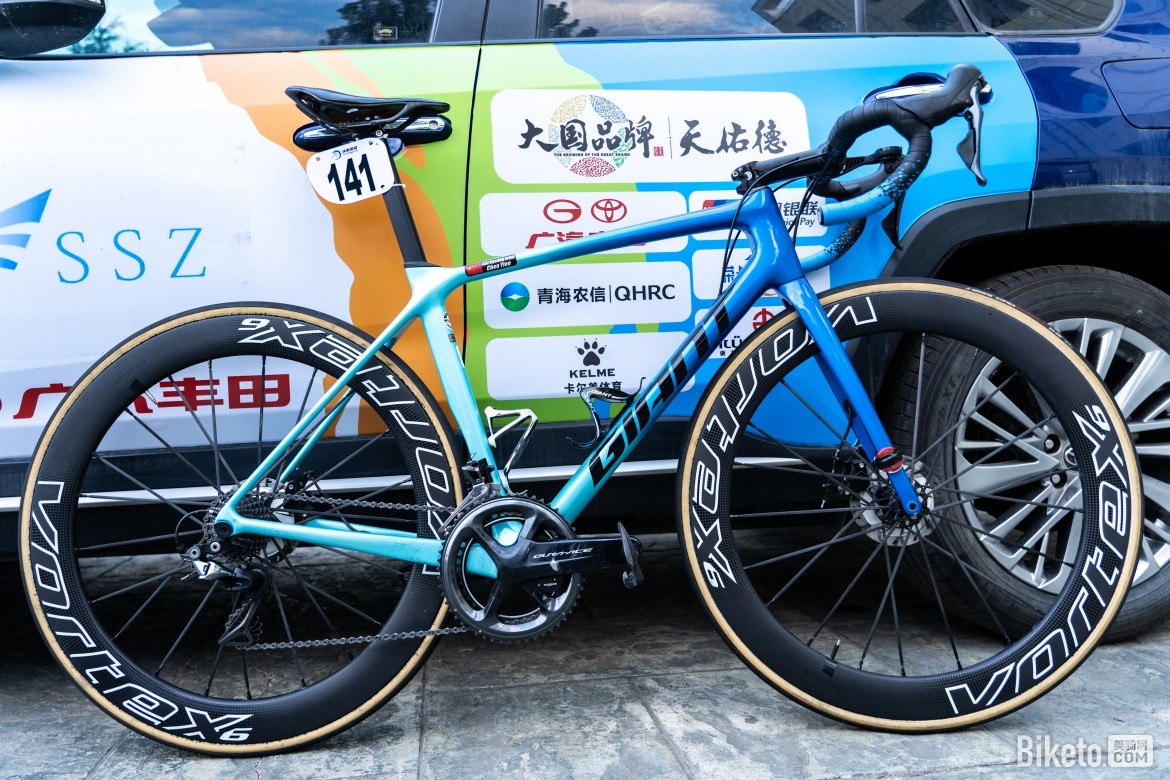 ▲上海队也带来了老款捷安特Propel参加此次比赛,前高框后低框的轮组配置属实让人有些迷惑