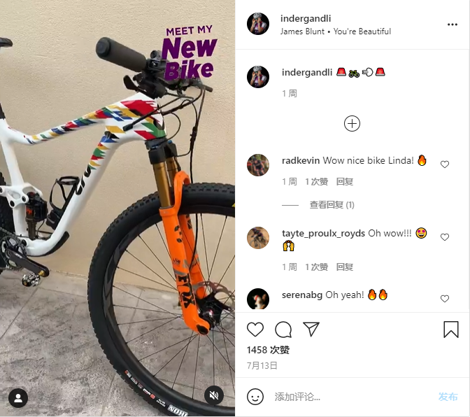 Linda Indergand的座驾Liv Pique是一款拥有110毫米前叉行程的全避震XC车,Pique以女性身材为标准,结合了为爬坡设计的几何以及Giant广受欢迎的Maestro悬挂来进行设计的。