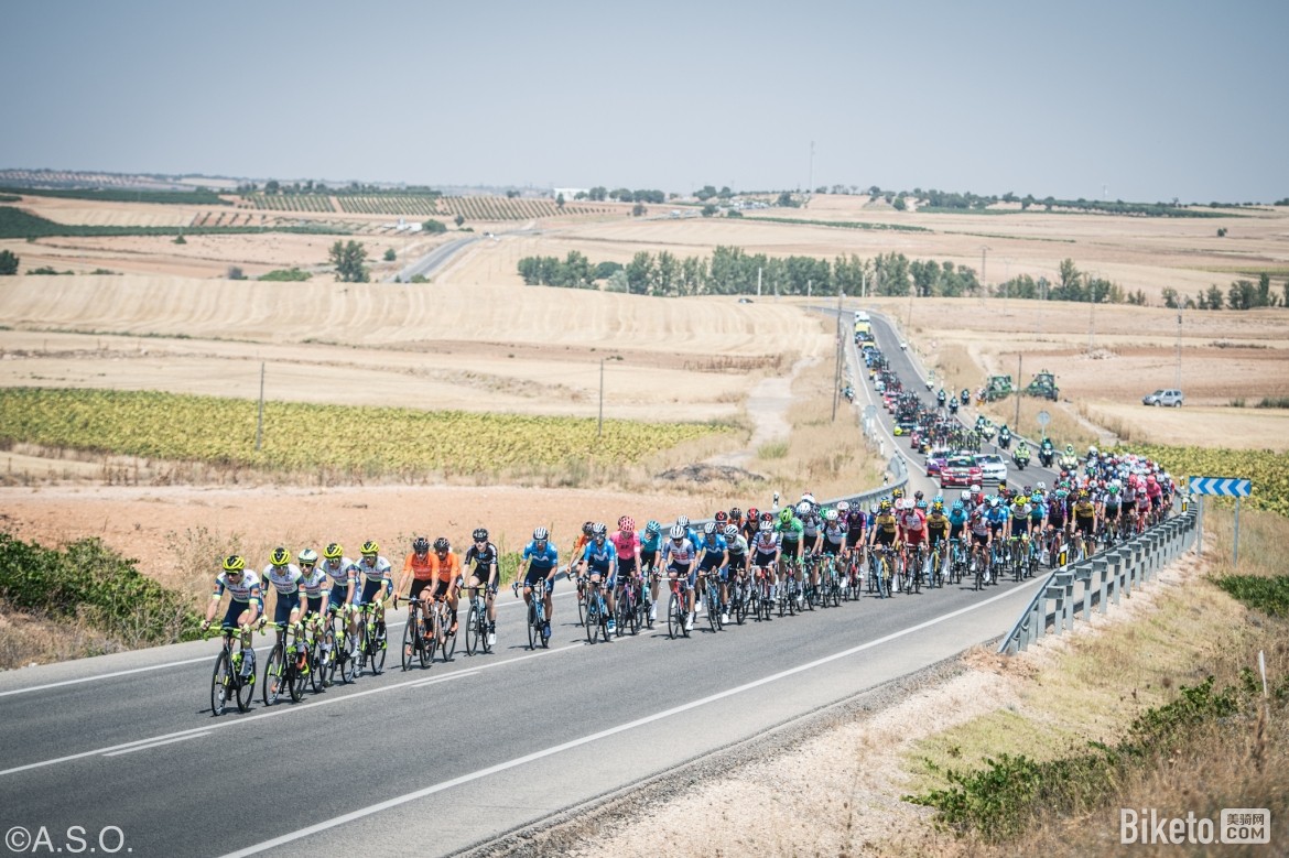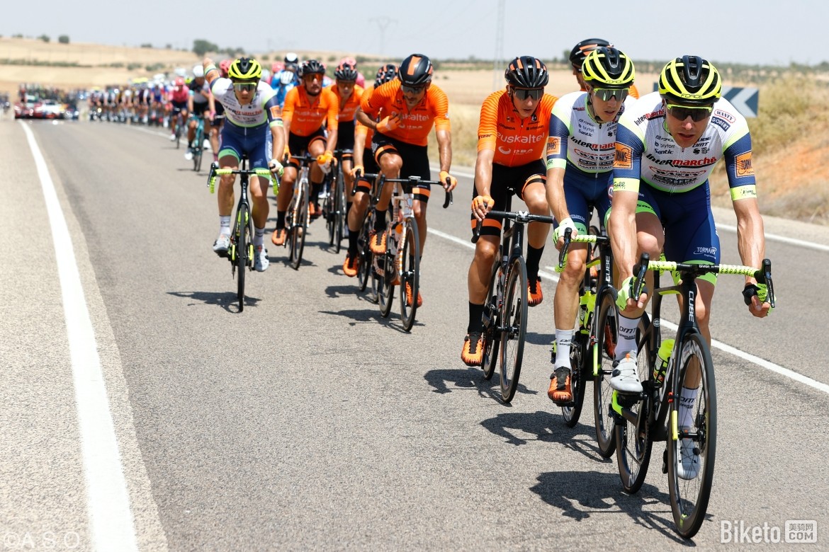比赛开始后,外卡车队们立刻行动,桑切斯(布尔戈斯-BH)、拉斯卡诺(西班牙农业银行)和阿斯帕雷恩(Euskaltel-Euskadi)三人组队突围,主集团淡定地放任他们走远,后续也没有更多车手尝试进攻,突围三人逐渐建立了7分钟的领先优势。在这一略显枯燥的平路赛段,欧倍青-菲尼克斯、德库尼克-快步和FDJ车队的表现较为积极,他们小心翼翼地护送着自家冲刺手处在集团前方,等待着途中冲刺点和终点冲刺的到来。