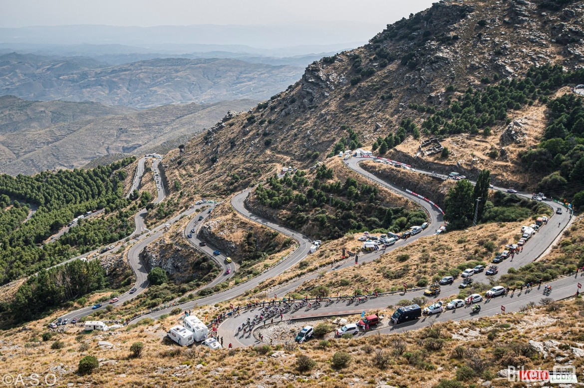 通过1级坡顶后,巴代(DSM)拿到了第二名,有可能在下一个赛段穿上圆点衫。卡鲁索(巴林胜利)状态奇好,将自己同追击集团的差距拉大至2分钟左右,领先主车群3分钟上下。此后,卡鲁索继续保持着单飞的态势,并以领先追击集团3分25秒,领先主车群5分20秒的巨大优势开始了最后的爬坡。