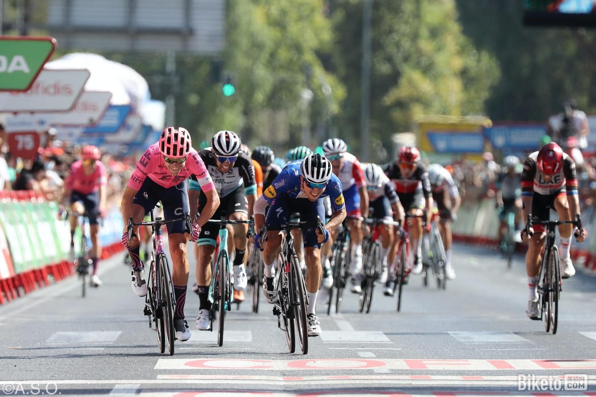 赛段结束后,四色领骑衫没有发生变化。埃金(旺蒂)身着总成绩红衫,雅各布森(德库尼克-快步)领衔冲刺绿衫,卡鲁索(巴林胜利)保有爬坡圆点衫,贝纳尔(英力士)继续身穿最佳年轻车手白衫。