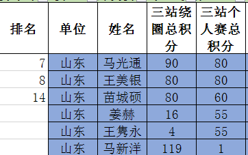 结合总积分图,把累计积分在60分以下的选手筛除。如果连单场前8名(积分60分)都进不了,冲击领奖台就是奢望。符合条件的选手共14人,名单如下: