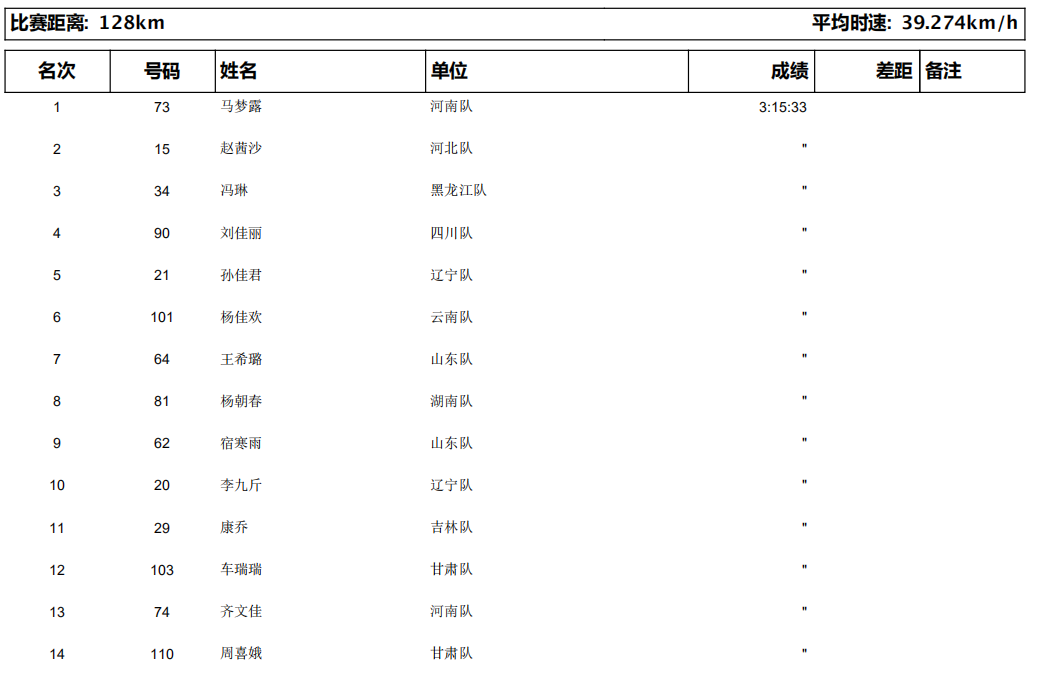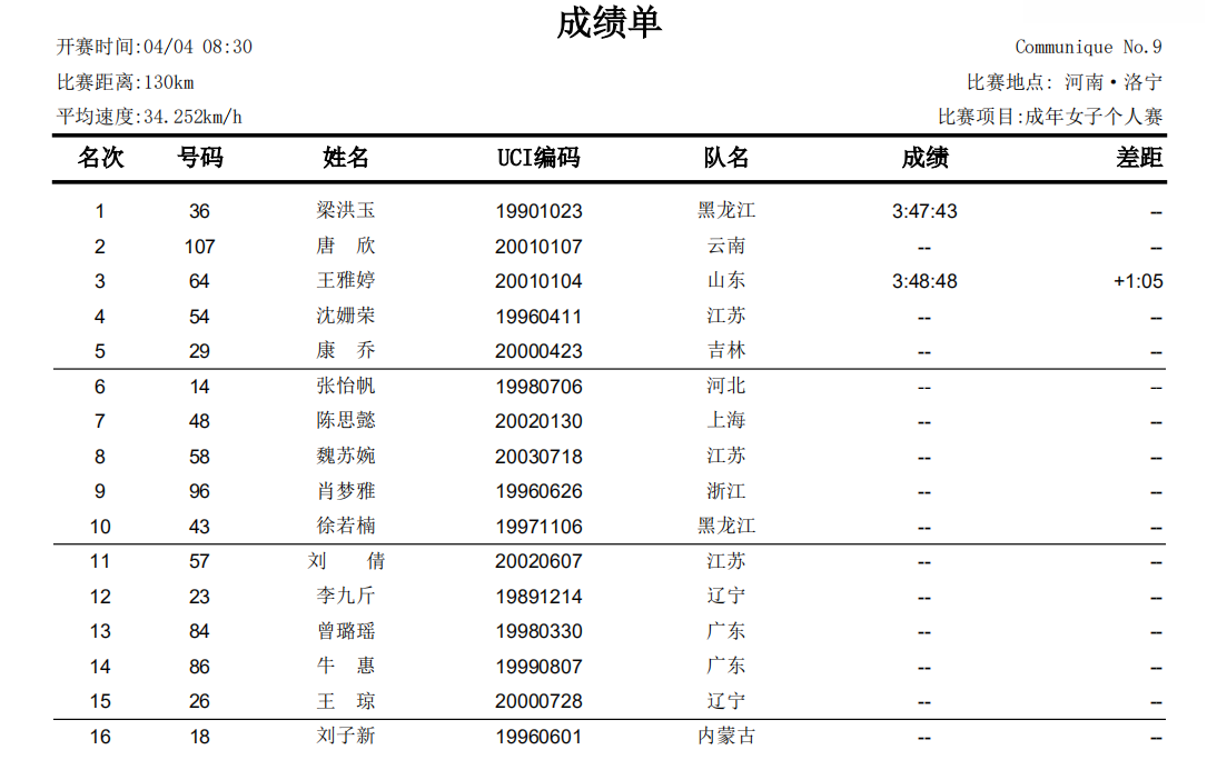 第三场:大集团在最后15公里追回突击小队后,在终点前进行大集团冲刺对决,河南的马梦露凭借队友的“加持”,以两个车位的优势夺冠,河北的赵茜沙、黑龙江的冯琳分获二、三名。
