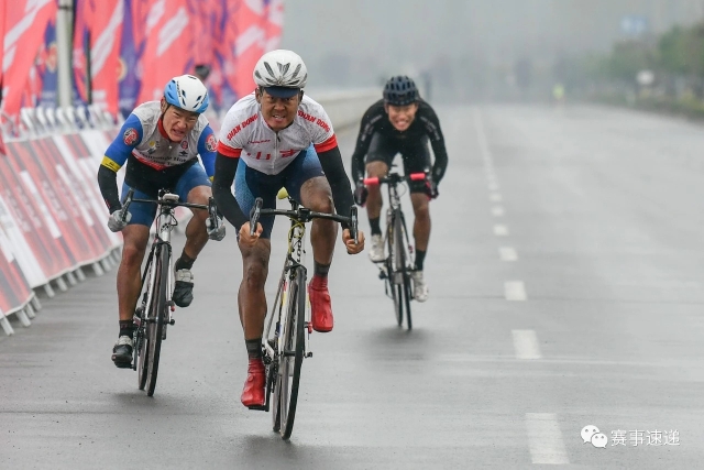 第二场:距离比赛终点25公里,王美银、李自森、刘满铎组成小队脱离突围集团,突围集团虽努力追击,但湿冷天气使得追击效率大打折扣,最终王美银利用经验优势登顶领奖台。