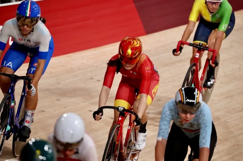 9月14日,第十四届全运会场地自行车女子全能赛决赛在河南省洛阳市体育中心自行车馆展举行。