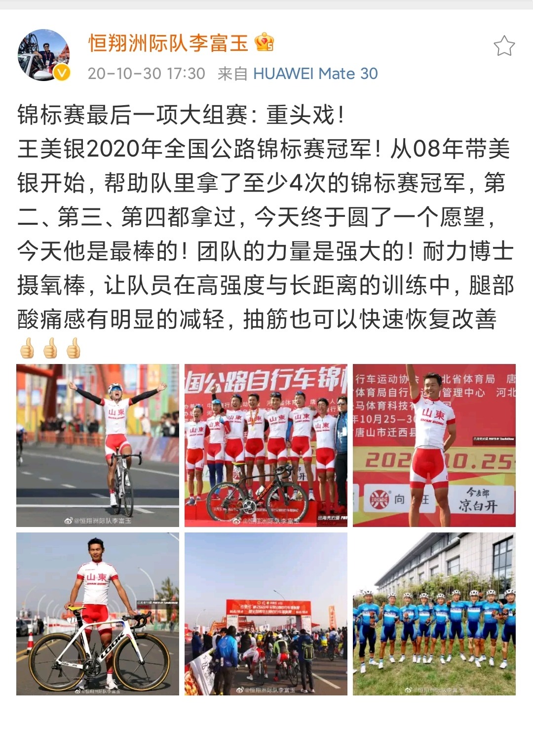 赛后王美银说:“拿成人计时赛冠军的成绩开始就是李教练一路带我的,这么多年师徒的情分更像是家人,我能做的就是一直努力训练,教练不断督促我的成长除了对我的训练还有生活,是我生命都是很重要的一个人。”挺感人的一段话,你可能没办法体会,但是教练对于运动员的重要是不容置疑的。所以我们在支持他的同时更要支持李教练的多年辛苦,希望俩人配合能有更多惊喜给车迷们。