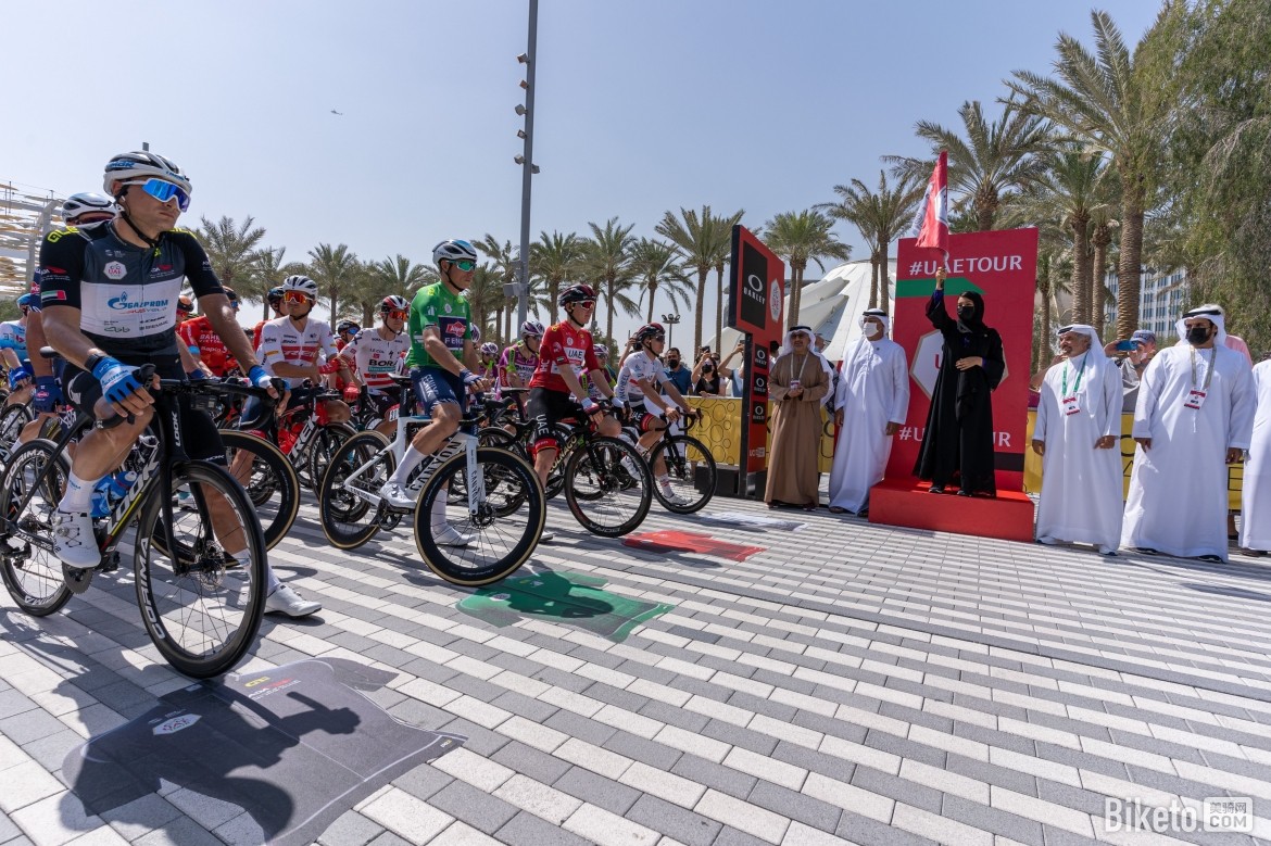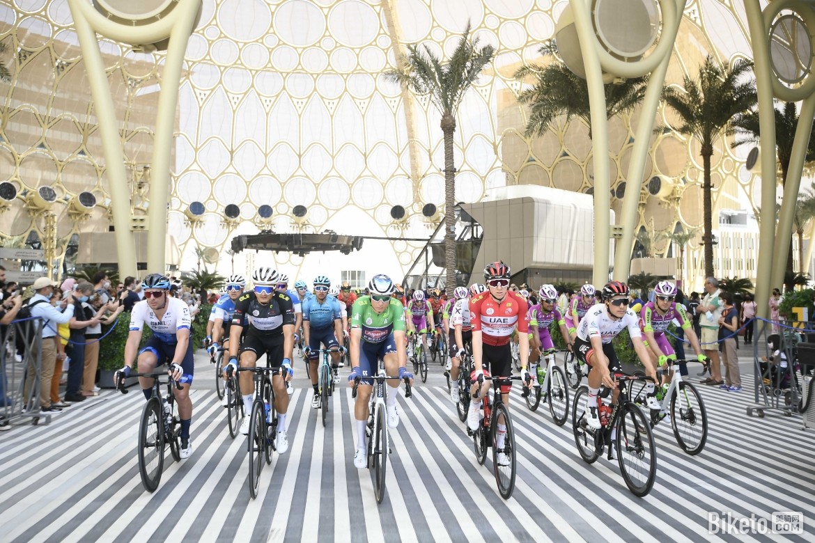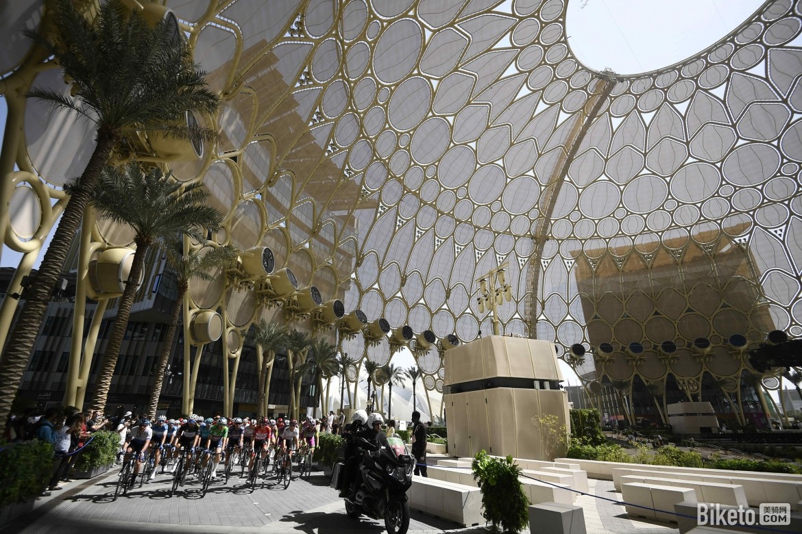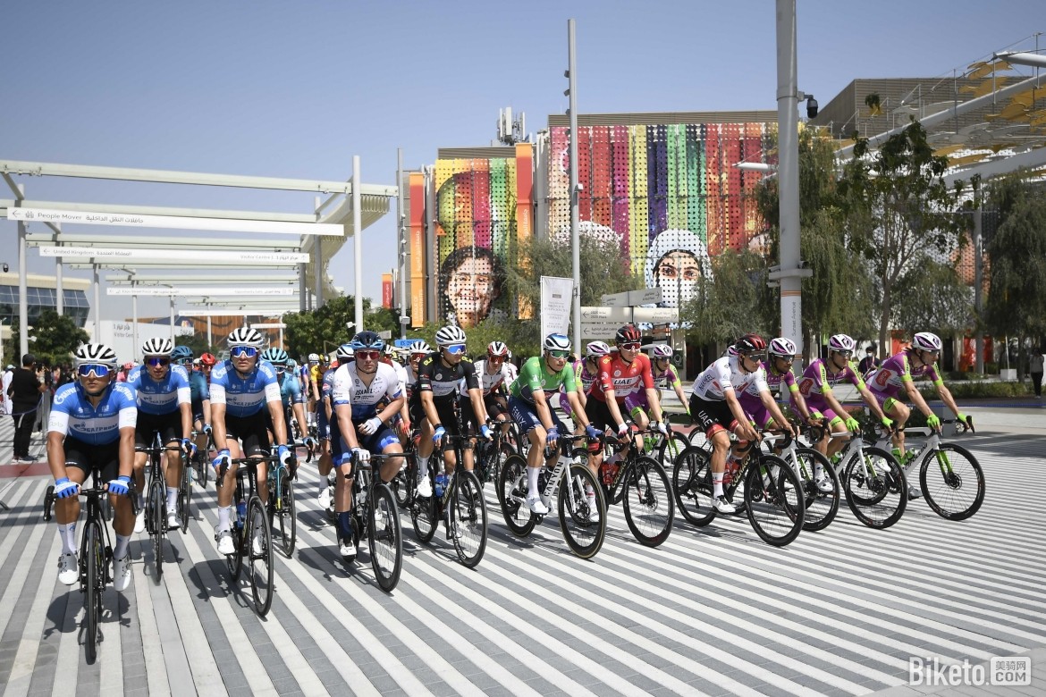 大集团从2020迪拜世博会展馆出发,中立骑行结束后,六名车手立刻展开突围行动,其中Gazprom-RusVelo车队派出三人,在突围集团中占据了人数优势。
