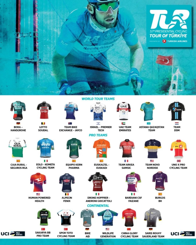 环土耳其自行车赛是UCI ProSeries职业系列赛,本届比赛将有25支车队参加,其中包括7支顶级世巡赛车队,12支职业洲际车队,以及6支洲际车队。