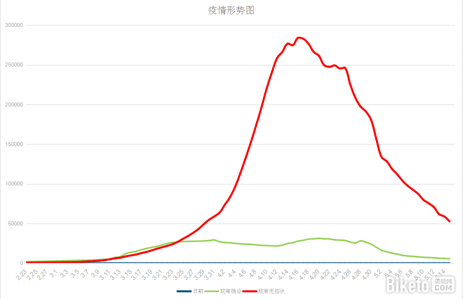 1、国内疫情整体情况。参考国家卫生健康委员会官网,重点观察现有确诊病例(本土+境外输入之和)、无症状感染者指标。从下图所知,2月23日起,现有确诊病例和无症状感染者呈几何倍数增加,国内采取最严格管控措施,在4月16日无症状感染者达到28万例的峰值后快速下降,直至5月15日,现有无症状感染者已经回落至5万例,参照武汉保卫战经验,还需一个月左右,国内现有确诊病例和无症状感染者回落至较低水平(参照2021年全运会自行车项目比赛日,现有确诊1013例,无症状感染者350例),届时国内将具备恢复大型赛事举办条件。