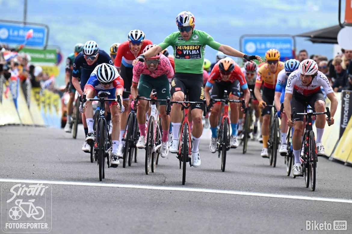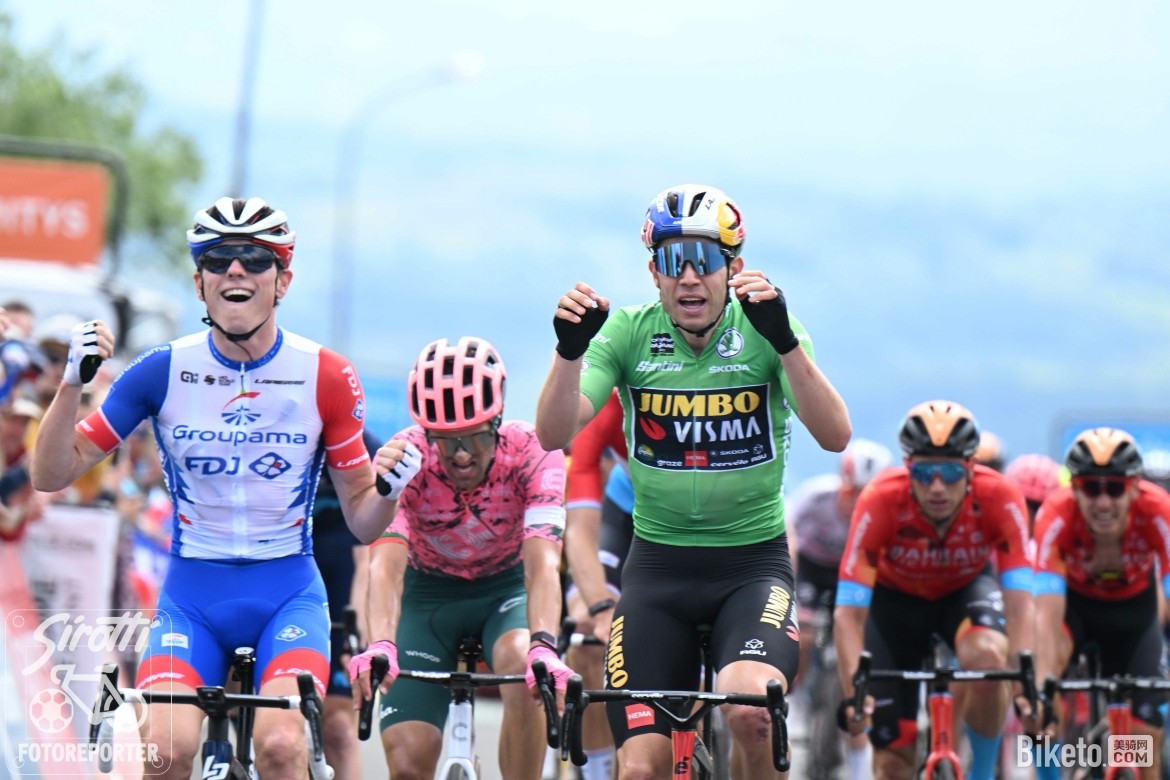 6月7日,环多菲内第三赛段结束。范阿尔特(珍宝-维斯马)在终点线上演乌龙庆祝,被戈迪(FDJ)推车超越,后者以半个前轮的优势成功拿走赛段冠军,笑到最后。