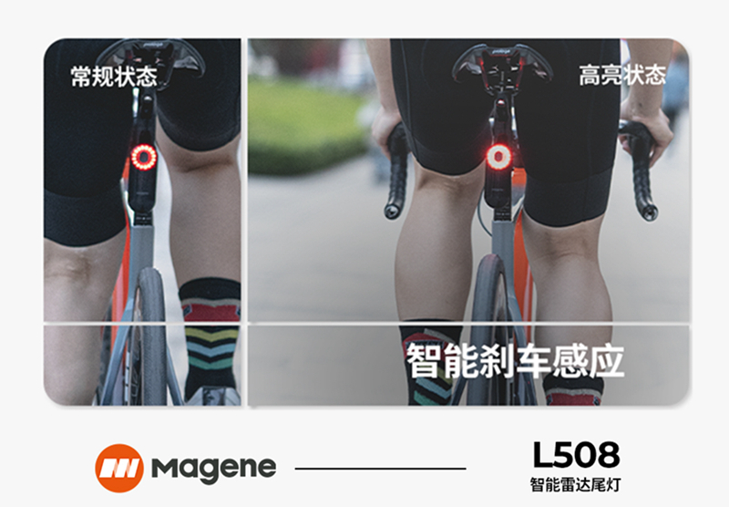 作为国内聚焦智能骑行产品的创新型品牌,迈金科技走在智能骑行装备的前沿,并一直关注着自行车运动的安全发展。在2022年5月26日的夏季新品发布会上推出了一款吸人眼球的产品——L508智能雷达尾灯。至此,迈金科技成为除佳明之外,全球第二家拥有智能雷达尾灯产品的品牌。