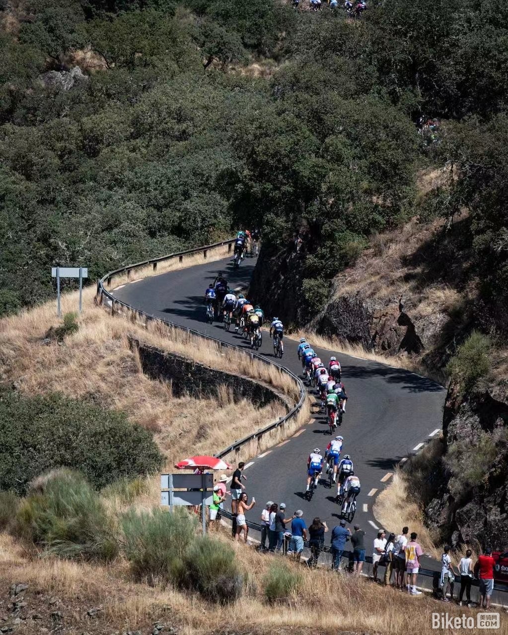 大集团也没闲着,在阿斯塔纳车队带领下疯狂追击突围集团。最后在距离终点前17公里附近追上稀稀拉拉掉队突围选手,此时有竞争关系的移动之星车队和快步车队开始发力,朝着皮沃罗山上突围选手发起冲击。