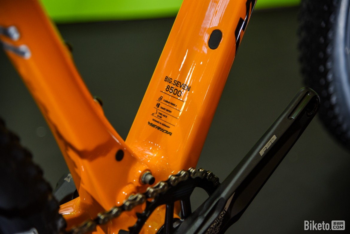 ▲车架下管写着BIG.SEVEN 8500的关键规格和卖点