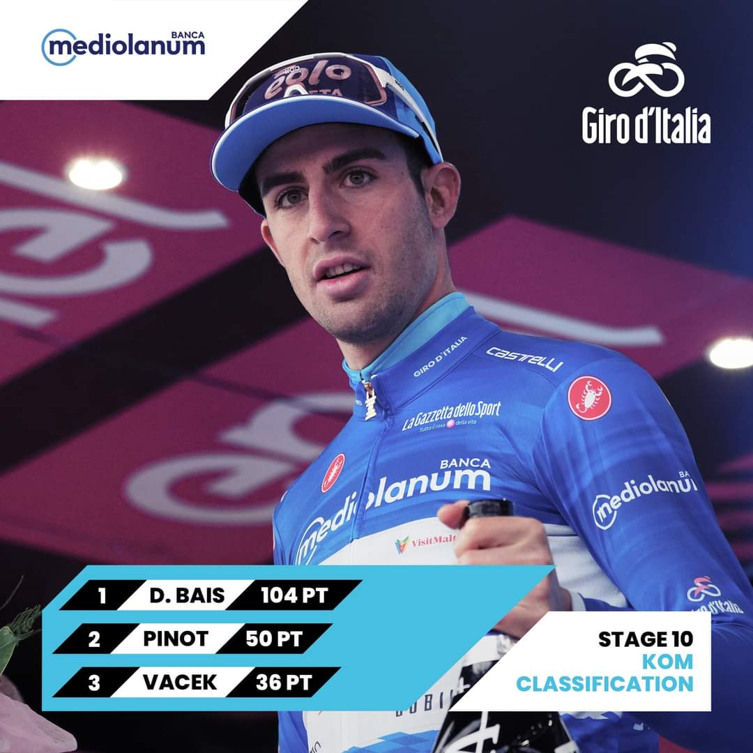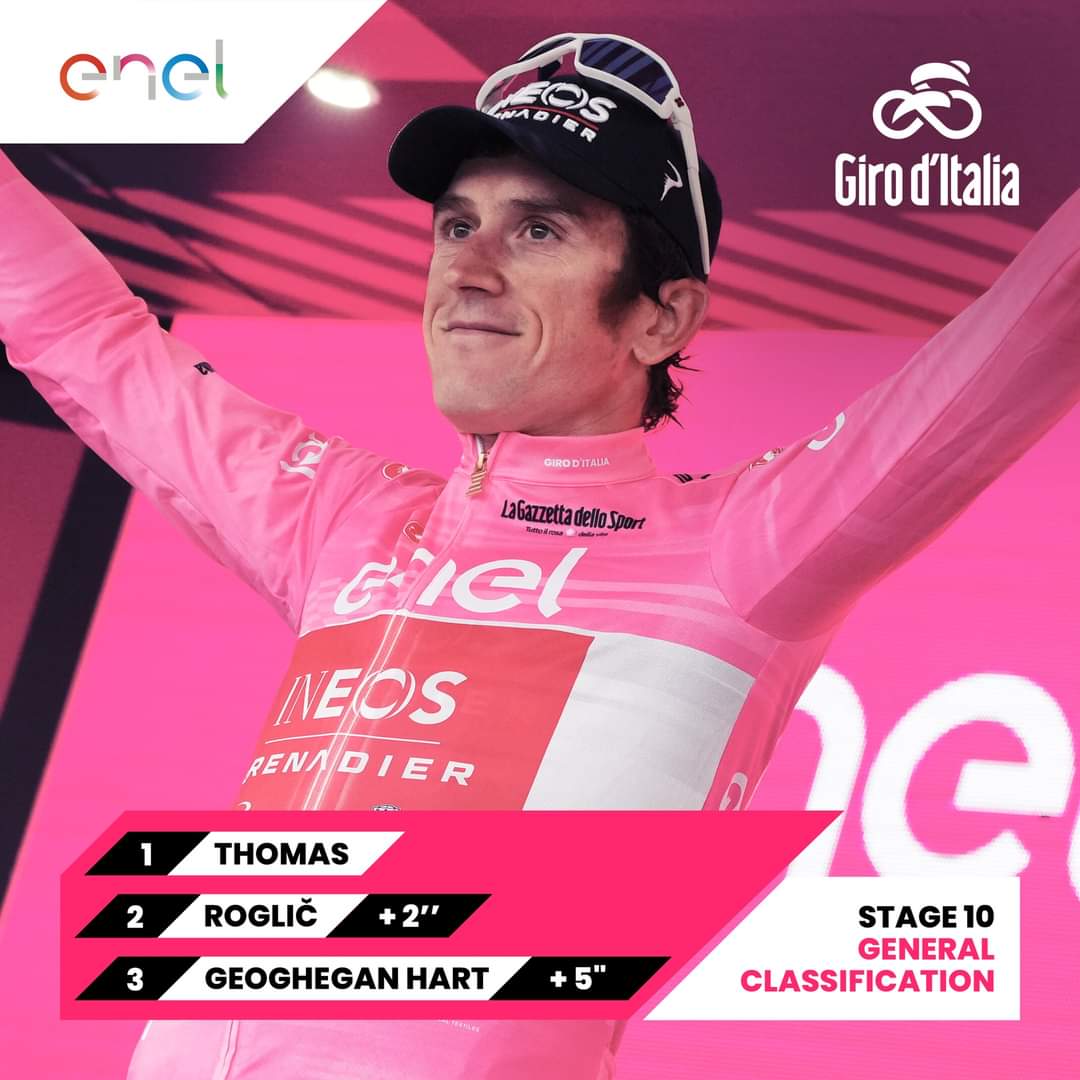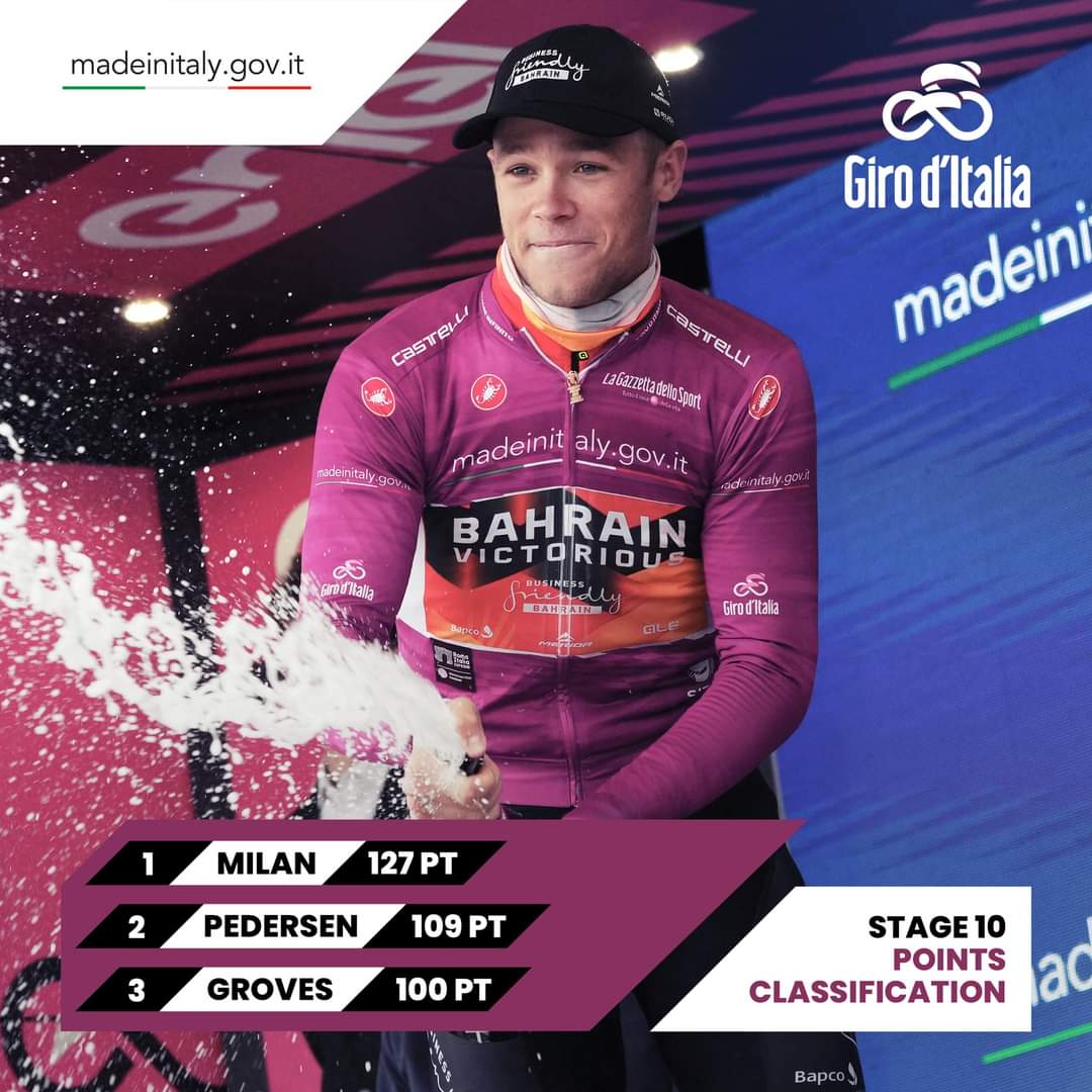比赛结束后,托马斯拥有粉衫,乔纳森拥有紫衫,拜斯拥有蓝衫,阿尔梅达拥有白衫。5月17日举行环意S11(卡马约雷—托尔托纳),敬请期待。